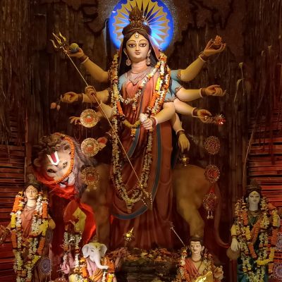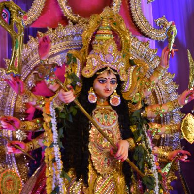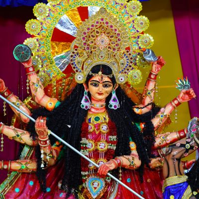 The pooja is especially auspicious during Navratri or on Fridays and Ashtami tithi (the 8th lunar day). Rituals involve chanting the Durga Saptashati or Devi Mahatmyam, offering red flowers, coconut, sweets, and lighting lamps with ghee.